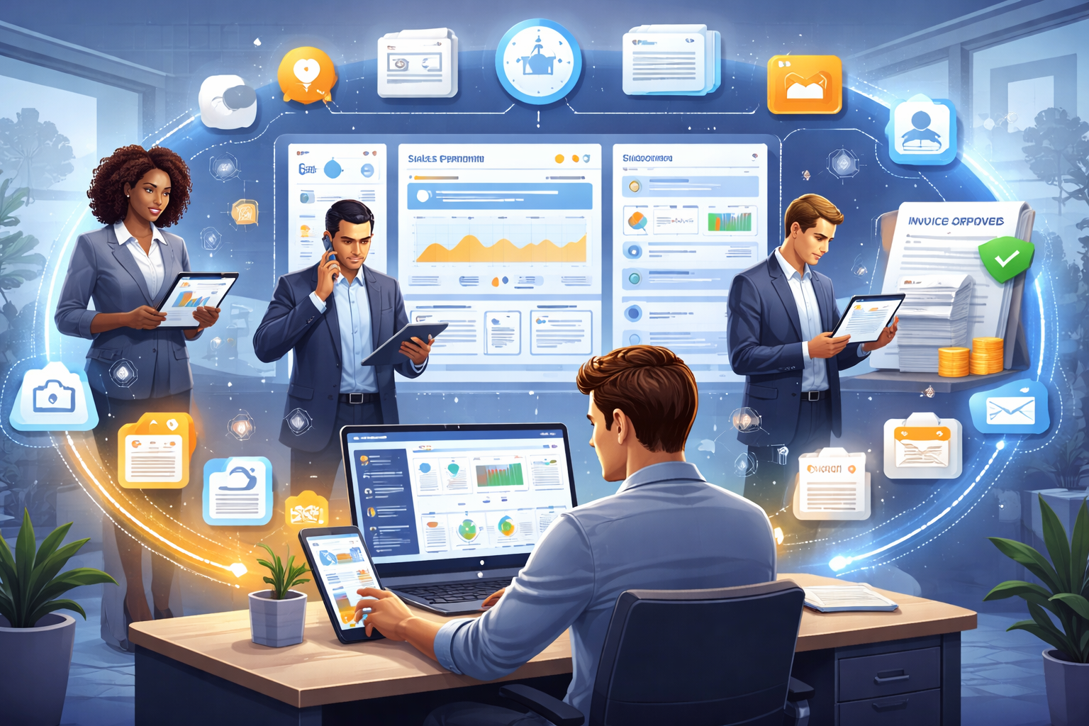 - Beschleunigen Sie die Rechnungsstellung und den Zahlungseingang mit Transparenten Order-to-Cash-Workflows